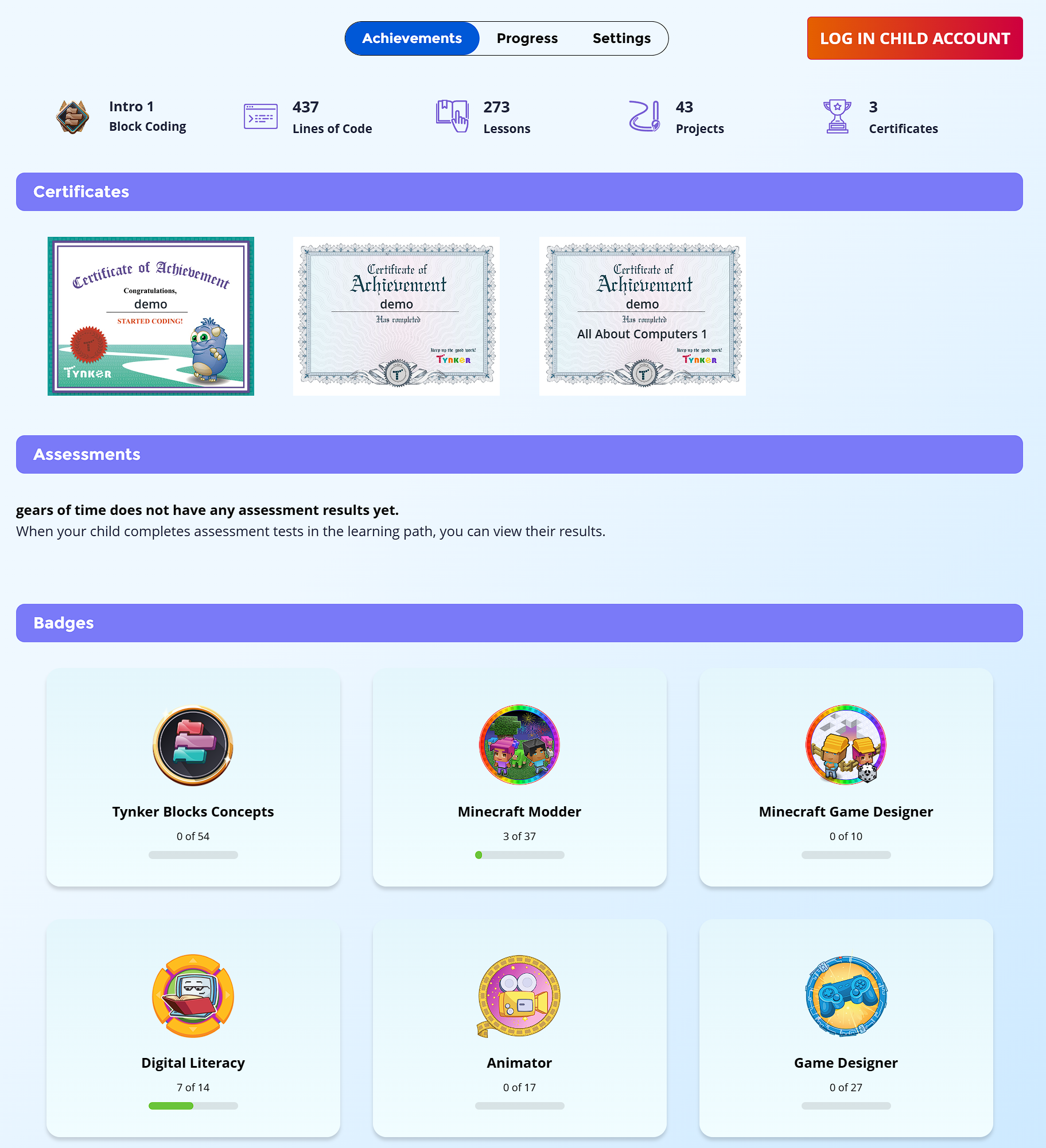 See My Child's Progress (Including Badges and Certificates)
